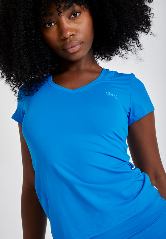 Tennis T-Shirt V-Ausschnitt Damen & Mädchen, cyan blau